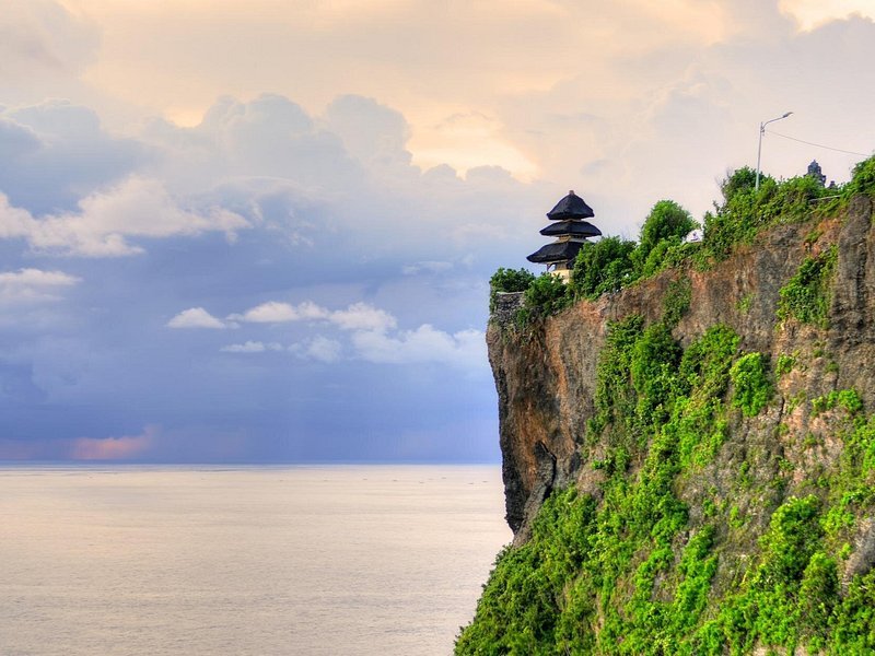 Dramatic temple perched high over the Indian Ocean.