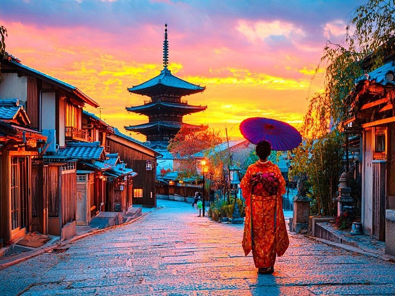 Explore Gion’s traditional wooden streets at dusk.