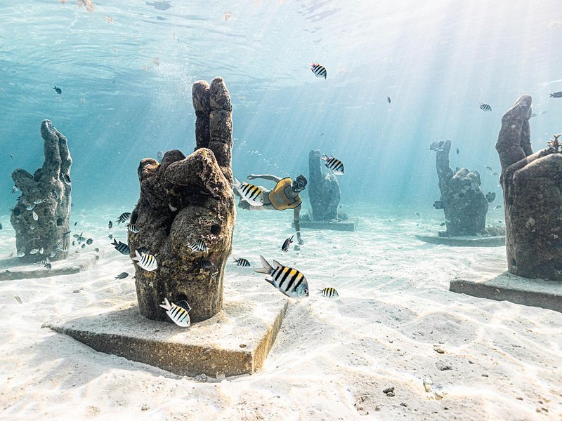 Discover coral gardens & underwater sculptures.