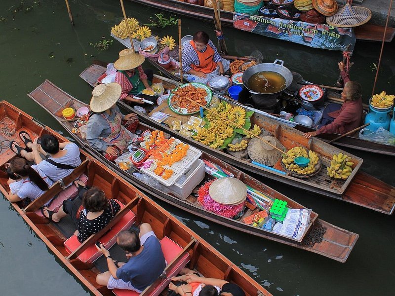 Experience traditional Thai markets from a boat.